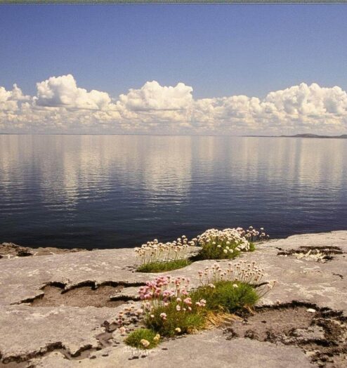The limestone region of the Burren along the Wild Atlantic Way is a UNESCO World Heritage site and it is world-renowned for its stunning and unique beauty. The area features stone walls criss-cross bare and rugged stretches of limestone rock. Ballyvaughan village lies at the heart of the Burren and it enjoys a spectacular view over Galway Bay.